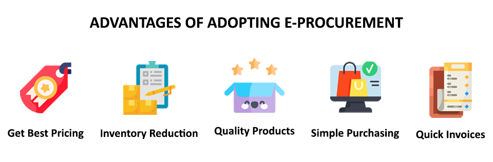 - In E-procurement not only are the processes simplified bringing efficiency within the team with systematic processing , but also brings an improved supply chain system enabling multi delivery for your multiple branches & competitive pricing for quality.