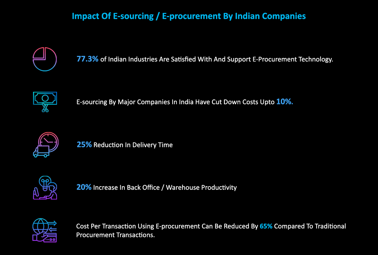 Sources: hindustan times , research gate - impact of e procurement on indian industries , procurement efficiency -indian company adopting esourscing platform